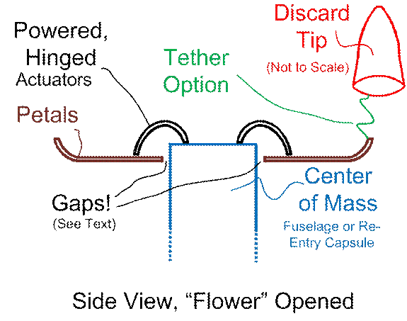 or plasma during re-entry, requiring excessive mass (for both petals and