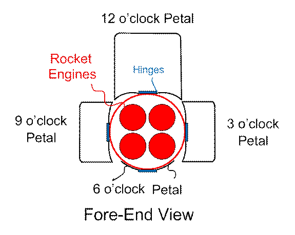 powered-hinge-attached fairings segments re-named to be “petals”, as they open