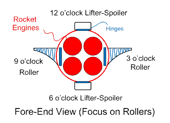 there at the super-heated “fore” tip, as we enter atmosphere. With the rocket engines destroyed, we can still