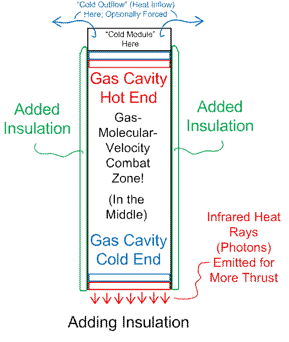 resides outside of the gas-cavity (chamber) thrust device. This cold side can be used to cool a