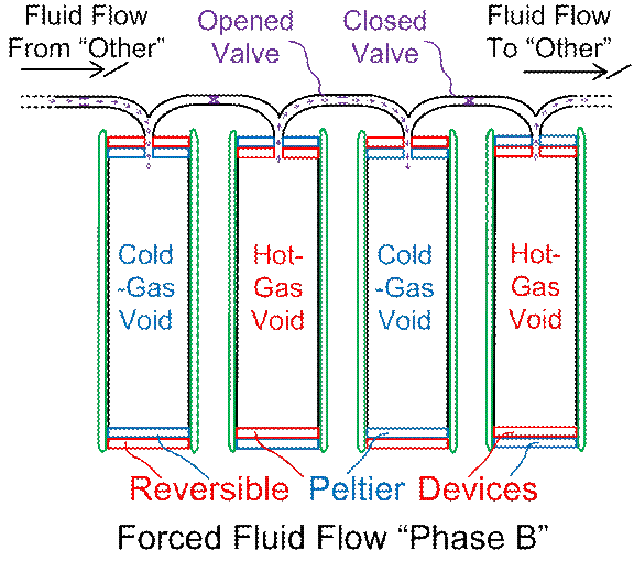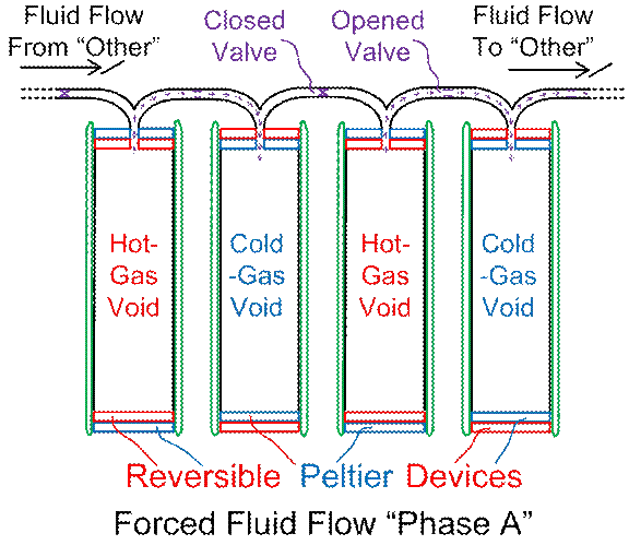 of another Peltier device touches the cavity-held gas. The hot side of the device interfaces to the
