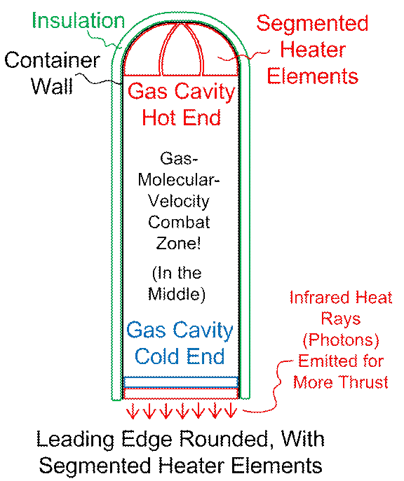 heater) inside the gas-filled thrust-reaction chamber is located at the leading